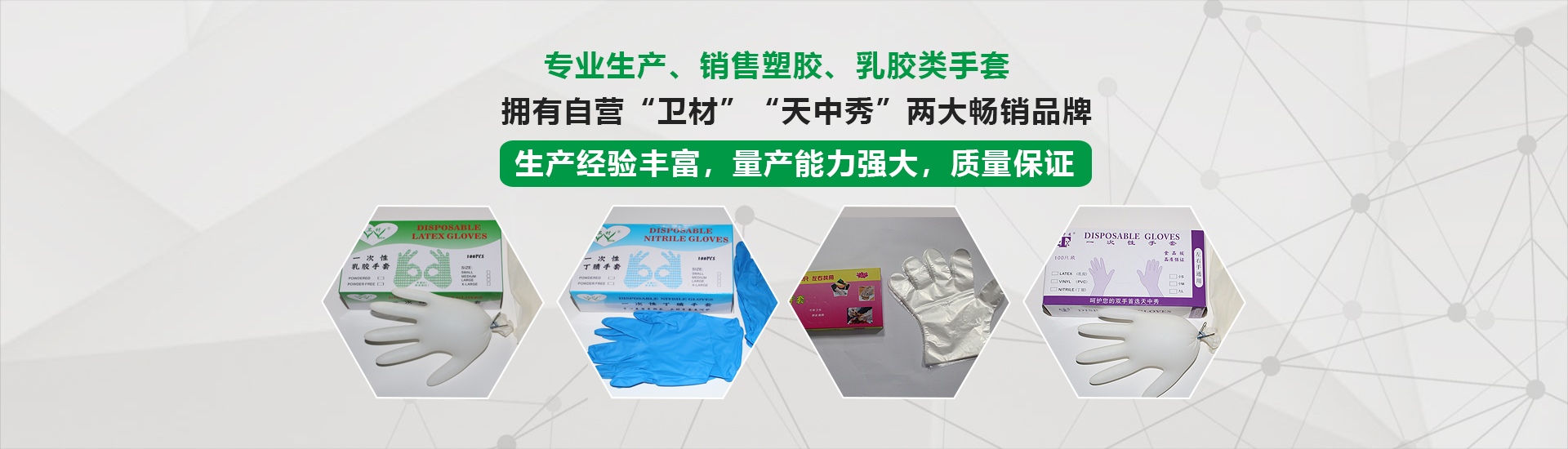 专业生产、销售塑胶、乳胶类手套